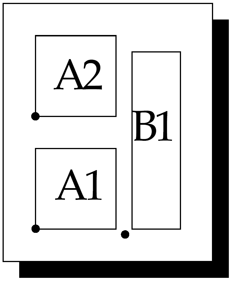 The next definition puts two jobs side by side on the film; the first has two pages. Note that the origin of B1 is displaced by 20 points. This would be likely to have arisen from seeing a comment such as: