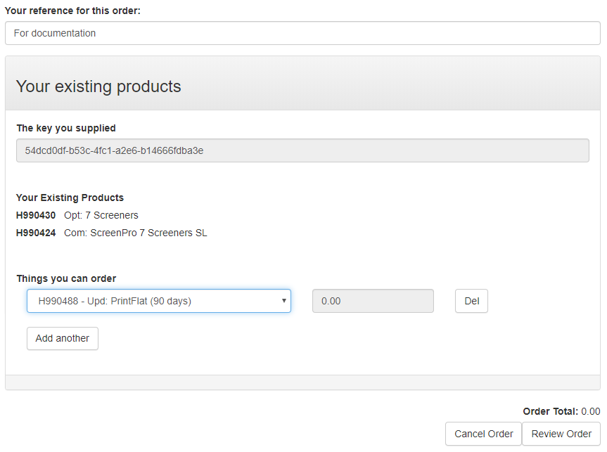 Figure 9.3 A Protection Key ID has been supplied and compatible products are available to order. Note: If you supply a Product Key the ordering system displays the contents of activated products in the Protection Key ID (and not just the Product Key).