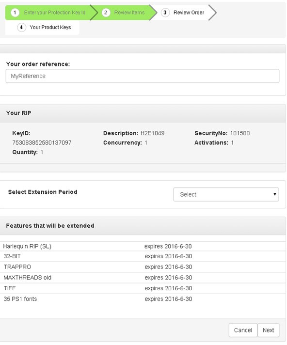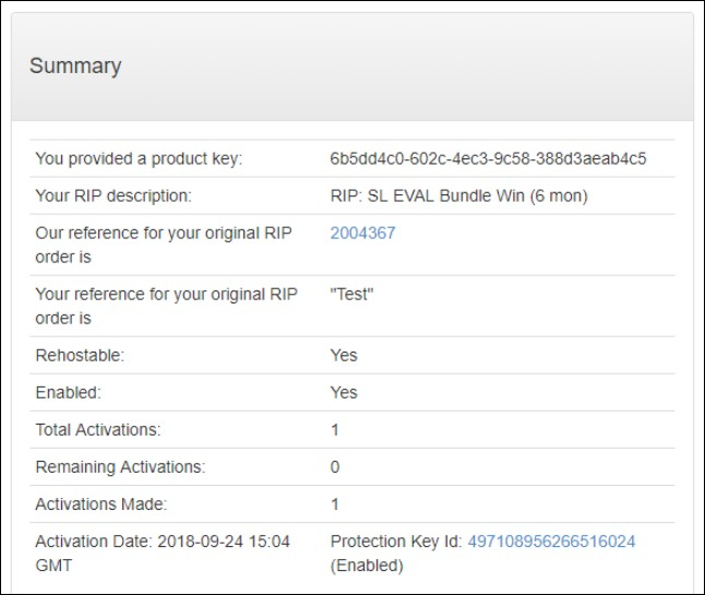 Figure 7.2 Your order reference and Protection Key ID