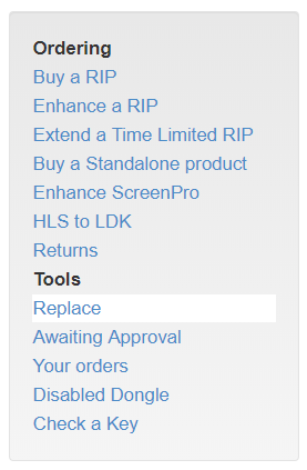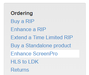 Choose Enhance a RIP from the Ordering panel at the left side of the page. This displays the Supply Key page: