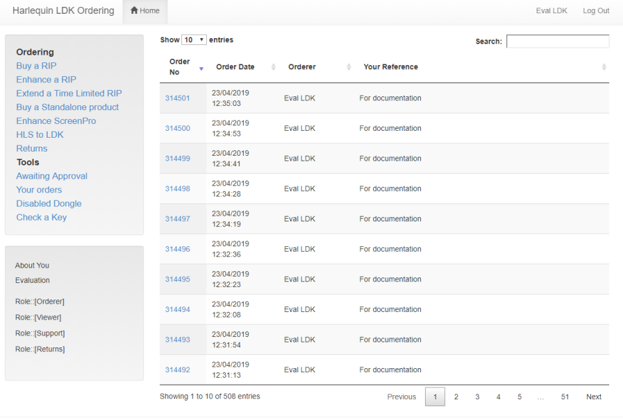 The Harlequin and ScreenPro LDK ordering system uses role-based security; each user of the system may have one or more roles.