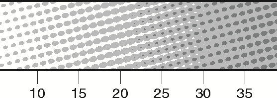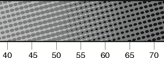 This example is for a 4-bit output raster (/ValuesPerComponent 16), but uses just 5 of the possible 15 non-zero output pixel values available with 4 bpp. The screen is based on one of the RIP's HDS (dispersed) screens. It is assumed that the droplet sizes suggests cross- over points at 40%, 72%, 80% and 88%, and makes them smooth by overlapping the levels. This would be expressed as: