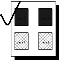 Therefore, when showpage really does deliver a page, the display list contains the information for all of the imposed pages, just as if the marks came from one big page—there is one stencil representing the layout, not many.
