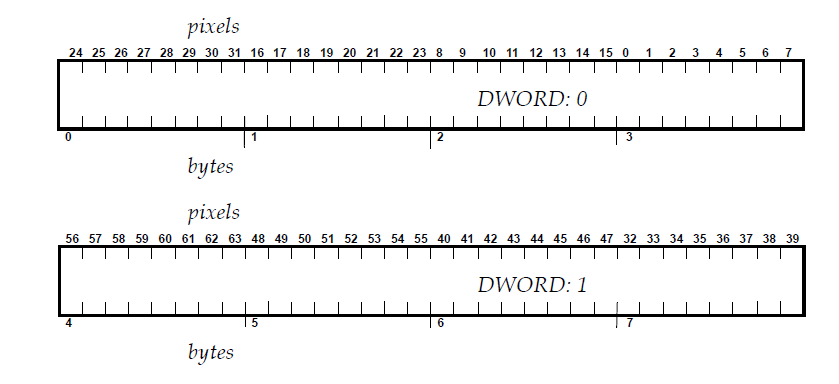 In a 32‐bit RIP each 32‐bit machine‐word (DWORD) in the raster has 32 bits of data, arranged with the left‐most raster bit/pixel at the most significant end of the DWORD (bit 31) and the right‐most raster bit/pixel at the least significant bit of the DWORD (bit 0), like this: