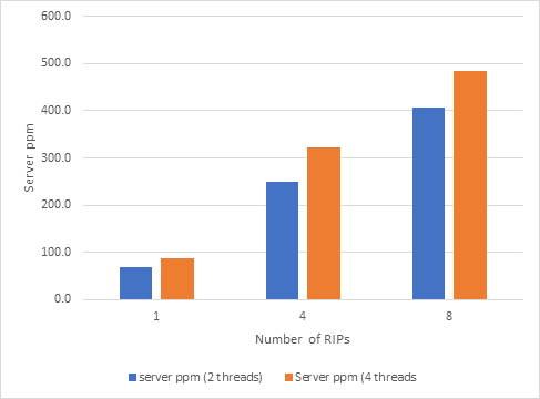 But the slower time per RIP does not prevent the total throughput continuing to improve with additional RIPs: