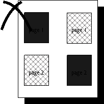 (v13) Imposition takes several pages from a PostScript-language job and changes the behavior of the showpage operator so that instead of delivering a page, it changes the coordinate system for the next page.