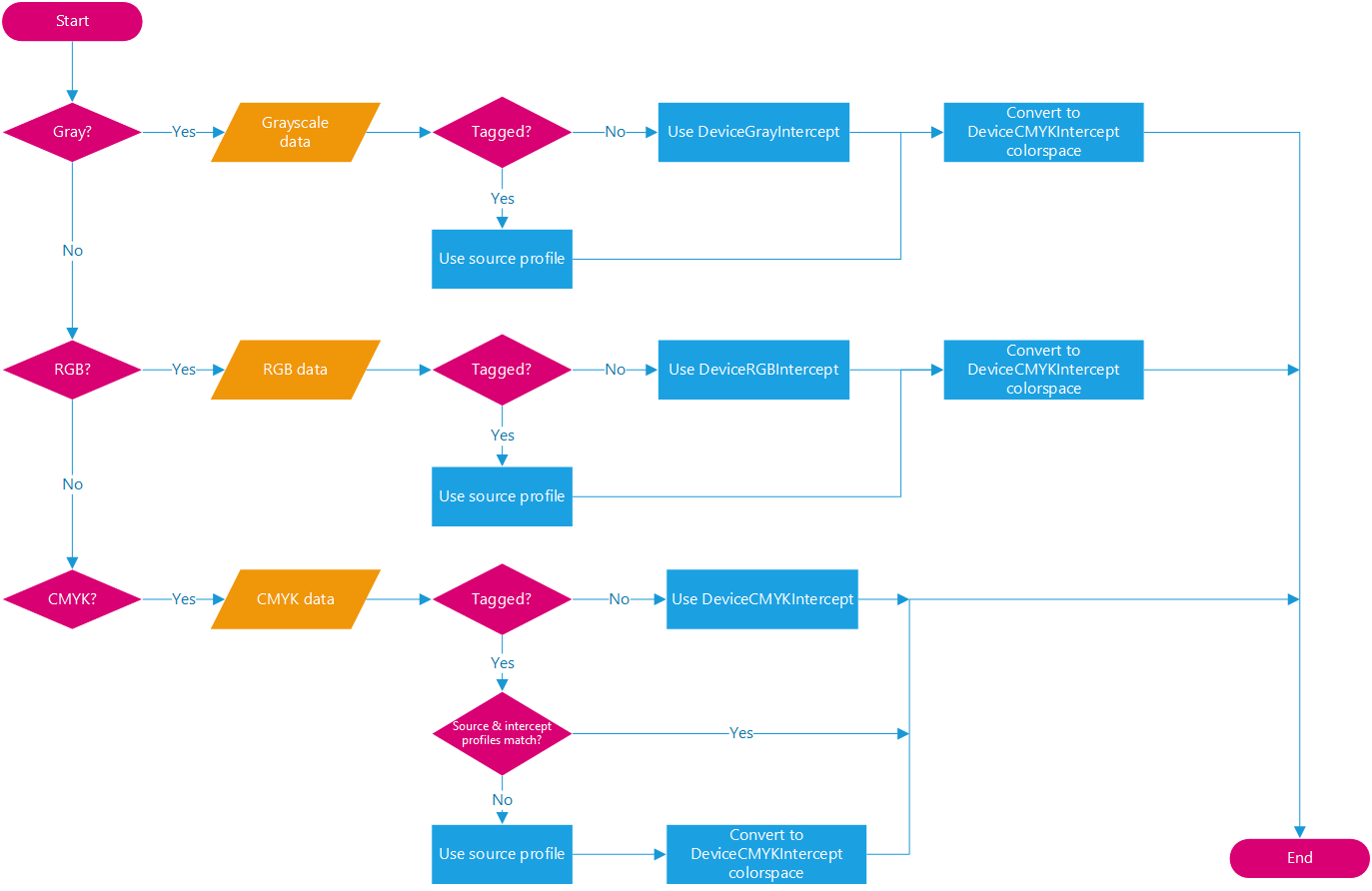 You may want to set a different profile to be used for the intercept. For example, a way to speed up processing is to set the DeviceCMYK intercept color space to the same space used for rendering, as there will be no need to carry out an intermediate conversion. Or you may want to specify a different profile for RGB or grayscale processing. Load the profile using the technique in the code snippet above (Creating a CMYK color space from an external profile) and use the color manager's setIntercept() method. How to do this is described in "Configuring the CMS", below.