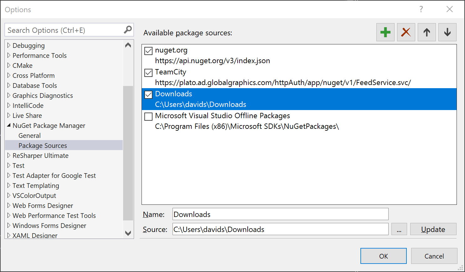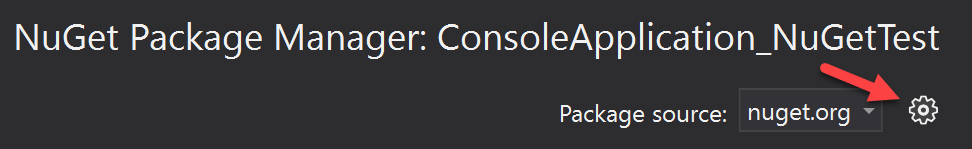 This opens the NuGet Package Manager. Click the Settings button.