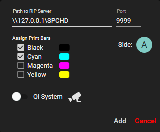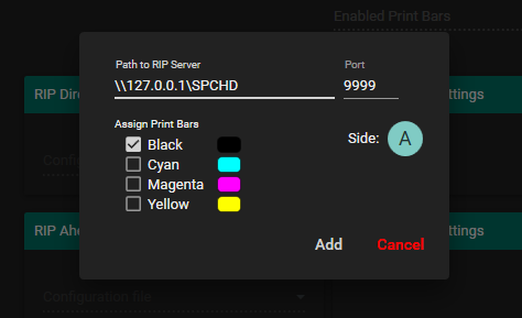 Use the collection of checkboxes to assign one or more print bars to the RIP Server.