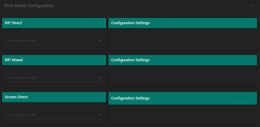 The additional Configuration Settings for the output device are only available for certain Harlequin Direct configurations.