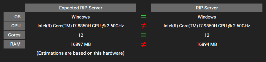 The settings of the Expected Server and the current RIP Server are shown side by side with an indication on whether they match.
