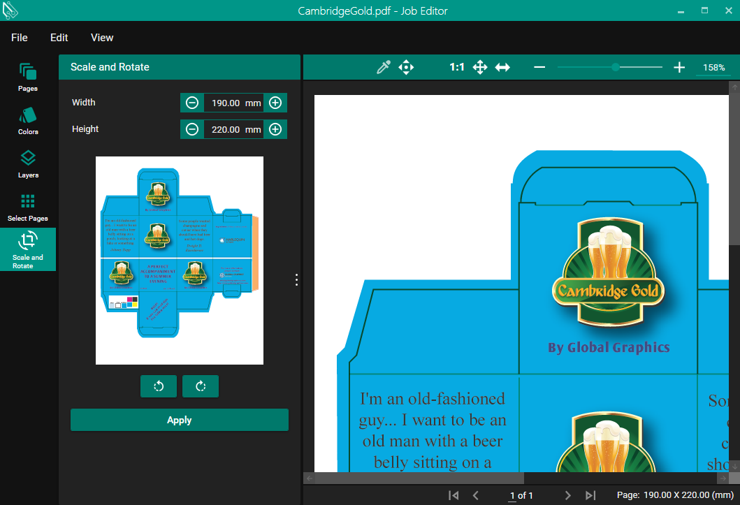 These controls allow you to specify the new width and height to set the document to. This will scale the contents as well, preserving the position of all elements in the job.