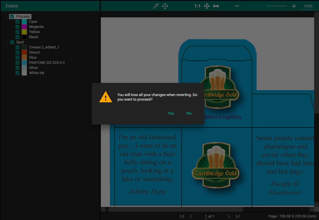 When you exit the Job Editor after modifying a spot color, you'll receive a warning message: