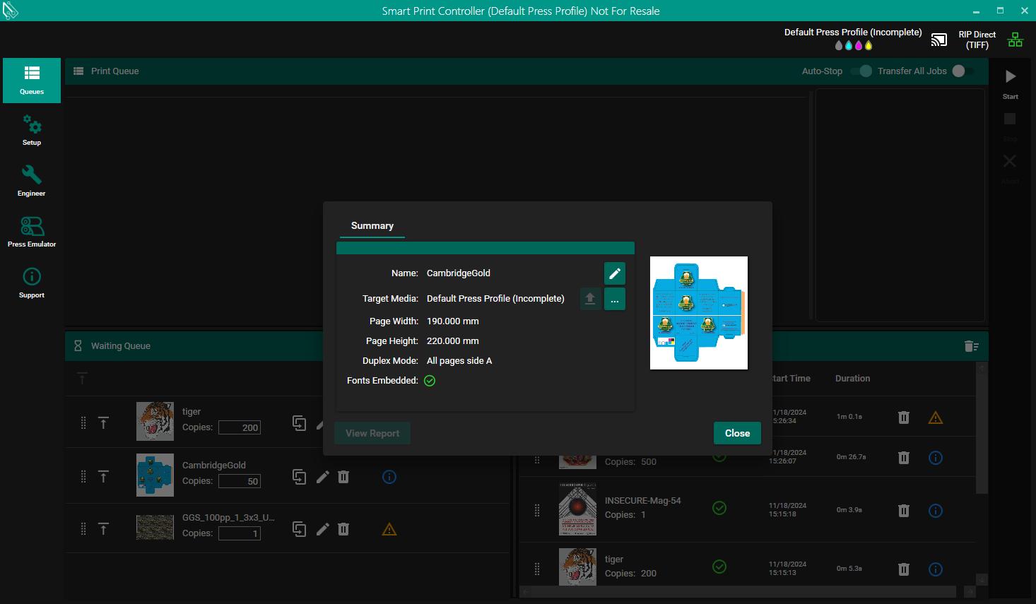 All editing features will be disabled when RIP Ahead jobs are loaded.