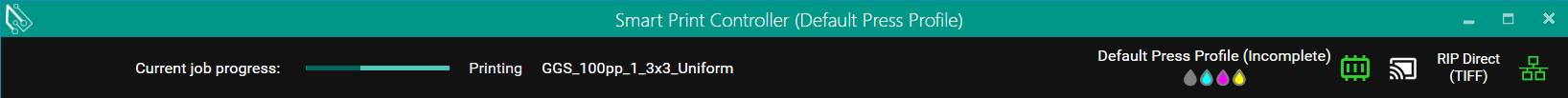 When a Print Run is active, a progress bar for the current job (as well as its status and name) displays.