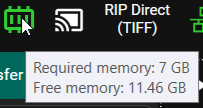 Hovering the mouse over this indicator displays the required memory and the free memory.