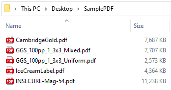 You should have received a SamplePDF.zip with your evaluation release. It contains a number of sample files that you can use to generate output with SPC.