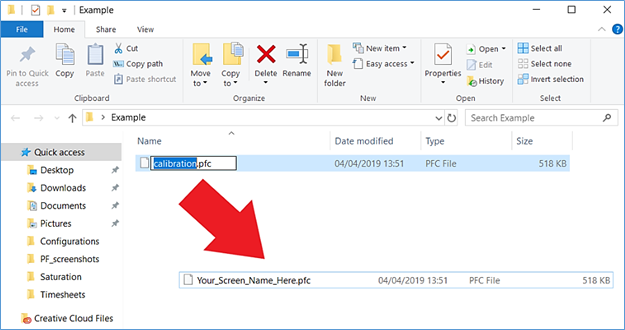 If required, rename the calibration or linearization .pfc data file (located in the similarly named folders) using the name of the screen folder you wish to apply it to.